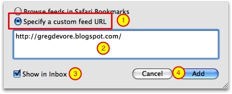 Paste the url into the field (2) and check Show in Inbox (3). Once you are done select Add (4).
